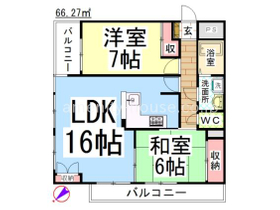 | 間取り | 2LDK 北西向き | 専有面積 | 66.27m 2 ( 20.04坪 ) |