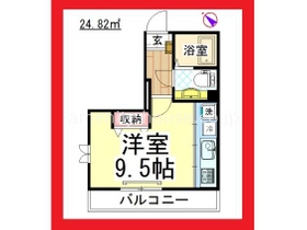 | 間取り | 1K 南西向き | 専有面積 | 24.82m 2 ( 7.5坪 ) |