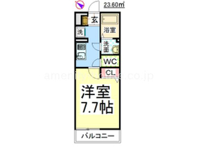 | 間取り | 1K 南西向き | 専有面積 | 23.6m 2 ( 7.13坪 ) |
