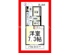 | 間取り | 1K 南向き | 専有面積 | 25.16m 2 ( 7.61坪 ) |