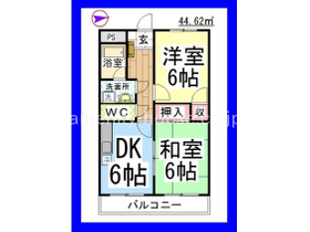 | 間取り | 2DK 東向き | 専有面積 | 44.62m 2 ( 13.49坪 ) |