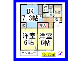 | 間取り | 2DK 南東向き | 専有面積 | 45.26m 2 ( 13.69坪 ) |