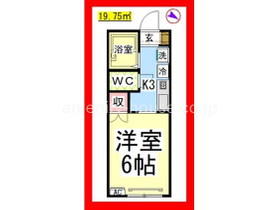 | 間取り | 1K 北東向き | 専有面積 | 19.75m 2 ( 5.97坪 ) |