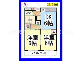 | 間取り | 2DK 南向き | 専有面積 | 37.23m 2 ( 11.26坪 ) |
