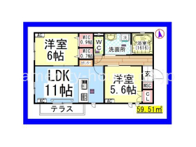 | 間取り | 2LDK 南向き | 専有面積 | 59.51m 2 ( 18坪 ) |