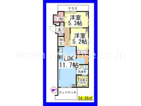 | 間取り | 2LDK 東向き | 専有面積 | 54.66m 2 ( 16.53坪 ) |