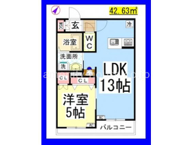 間取り | 1LDK 南東向き | 専有面積 | 42.63m 2 ( 12.89坪 ) |