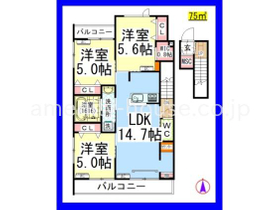 | 間取り | 3LDK 南向き | 専有面積 | 75m 2 ( 22.68坪 ) |