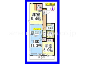 | 間取り | 2LDK 南向き | 専有面積 | 55.82m 2 ( 16.88坪 ) |
