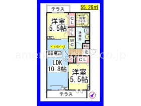 | 間取り | 2LDK 南東向き | 専有面積 | 55.26m 2 ( 16.71坪 ) |
