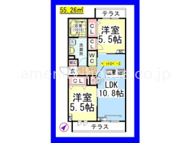 | 間取り | 2LDK 南東向き | 専有面積 | 55.26m 2 ( 16.71坪 ) |