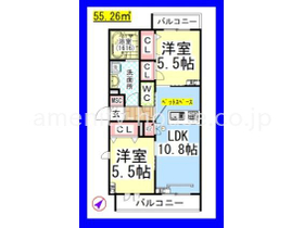 | 間取り | 2LDK 南東向き | 専有面積 | 55.26m 2 ( 16.71坪 ) |