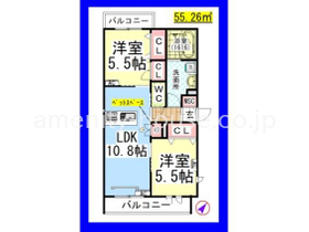 | 間取り | 2LDK 南東向き | 専有面積 | 55.26m 2 ( 16.71坪 ) |