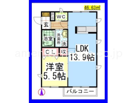 | 間取り | 1LDK 南向き | 専有面積 | 46.63m 2 ( 14.1坪 ) |