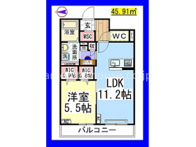 | 間取り | 1LDK 西向き | 専有面積 | 45.91m 2 ( 13.88坪 ) |