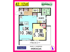 間取り | 1LDK 南向き | 専有面積 | 42.12m 2 ( 12.74坪 ) |