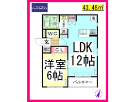 間取り | 1LDK 南向き | 専有面積 | 43.48m 2 ( 13.15坪 ) |