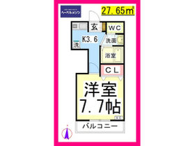 | 間取り | 1K 南向き | 専有面積 | 27.65m 2 ( 8.36坪 ) |
