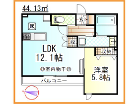 | 間取り | 1LDK 西向き | 専有面積 | 44.13m 2 ( 13.34坪 ) |