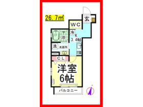 | 間取り | 1K 南向き | 専有面積 | 26.77m 2 ( 8.09坪 ) |