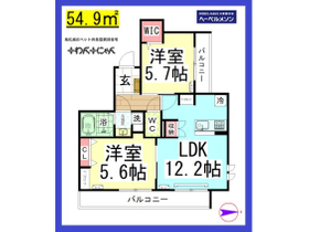 | 間取り | 2LDK 東向き | 専有面積 | 54.9m 2 ( 16.6坪 ) |