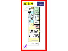 | 間取り | 1K 北西向き | 専有面積 | 28.51m 2 ( 8.62坪 ) |